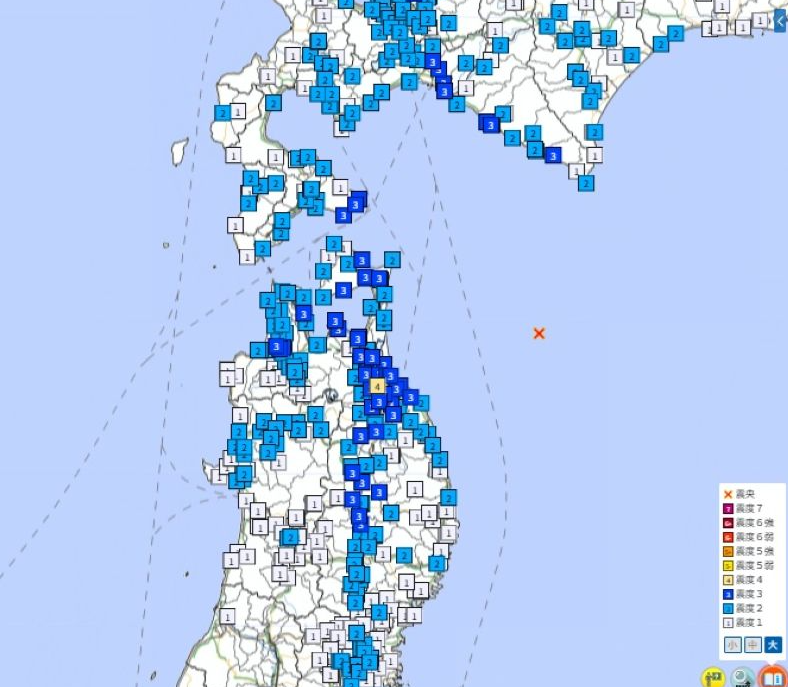 【10日の東北と北海道で地震の分布】