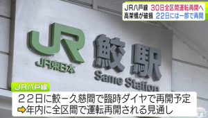 22日には、鮫駅〜久慈駅間が臨時ダイヤで再開する予定で、