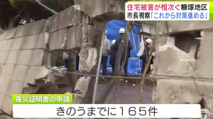 観測した地震で、住宅や外壁の損傷、駐車場の地割れなど