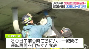【鉄塔修復、20日の見通し、八戸線は30日再開】
