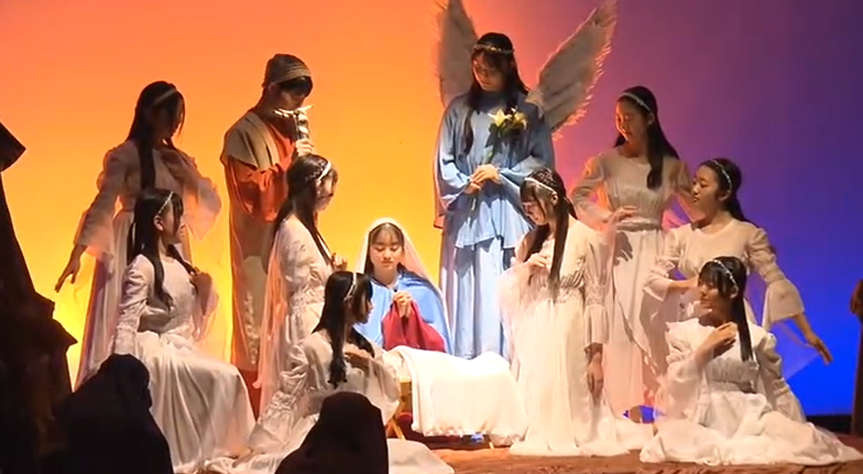 キリストの誕生までが再現され、生徒たちはナレーションに