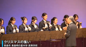 青森市で青森明の星中学・高等学校の生徒が演奏や劇を
