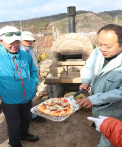 【門前町道下、バラ園にピザ窯登場、交流の場に】