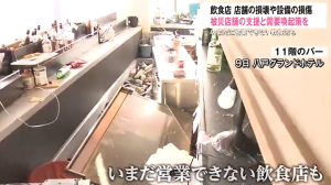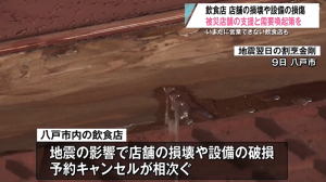 八戸市内の多くの飲食店は地震の影響で店舗の損壊や