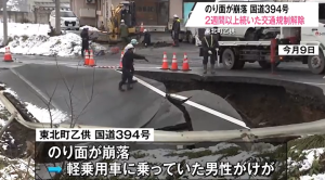 ◆東北町乙供の国道394号では、今月8日の地震で、