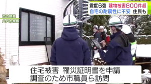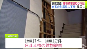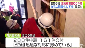【八戸市、建物被害800件超、被害の認定調査進む】