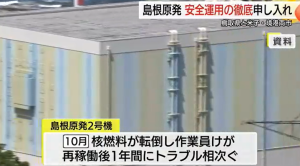 ◆再稼働から1年を迎える島根原発2号機で核燃料の転倒など
