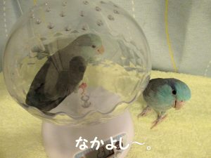その時、若い母親が、鳥のカゴ全てに指を入れていく。