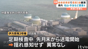 松江市鹿島町の島根原発では震度3の揺れが確認。