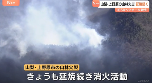 ◆山梨県東部の上野原市の山林火災は発生から4日目となる