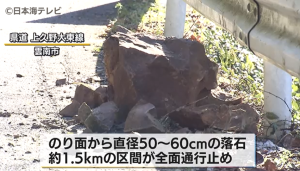 道路ののり面から直径50cmから60cmの落石があり、