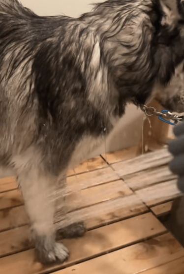 なかなか捕まらず、お風呂に連れて行くのにも苦労した。