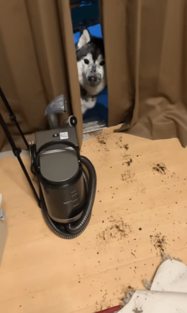 作業の途中でリビングに戻った瞬間、床一面に泥汚れが。
