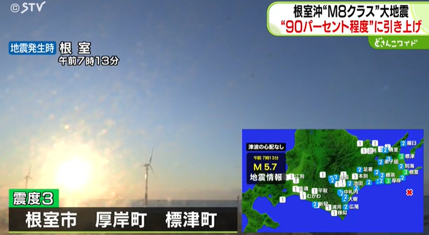 【15日、北海道根室で地震、大地震90%に引き上げ】