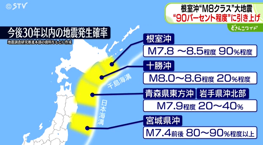 政府の地震調査委員会は、今後30年以内に根室沖で