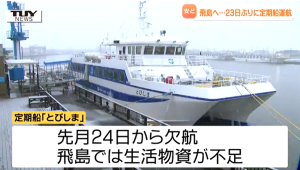 【酒田と飛島を結ぶ定期船「とびしま」23日ぶり出航】