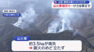 【山火事相次ぐ、秩父、藤枝、上野原で】