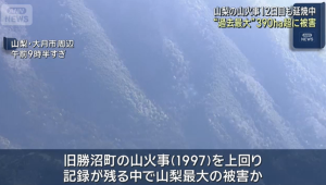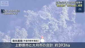 消火活動は近隣の県の防災ヘリや、自衛隊ヘリなどの