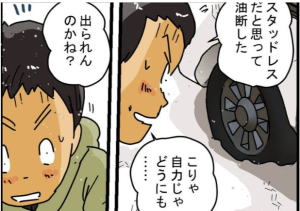 今、あちこちで、雪道をノーマルタイヤで走って、