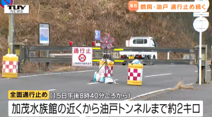 約2キロについて、15日午後8時40分ごろから全面通行止め。
