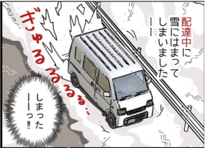 配達員さんは、スタッドレスタイヤだったのだが…。