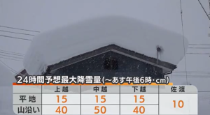 26日18時までの24時間に降る雪の量は中越の山沿いで