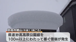 なだれが発生、上中下越では大雪やなだれに注意が必要。