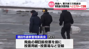 【飛島へ投票用紙を空輸、今まで記録にない】