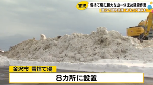 金沢市内では、現在8か所に雪捨て場を設置し、順次、
