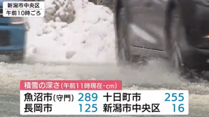 ◆新潟県の1日、午前11時現在の積雪は魚沼市守門で289㎝、