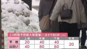 24時間に降る雪の量は中越の山沿いで最大80㎝などと予想。