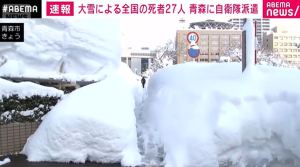 【政府発表、大雪による死者は27人、青森に自衛隊】