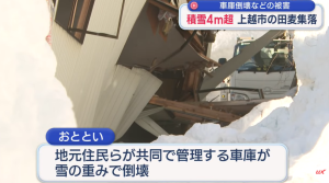 3日、地元住民らが共同で管理する車庫が雪の重みで倒壊。