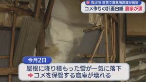 【新潟、落雪でコメを保管する倉庫が壊れる】