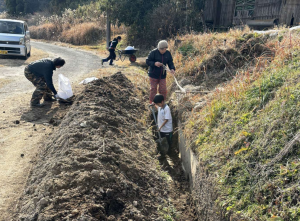 排水路の土砂を取り除く人々