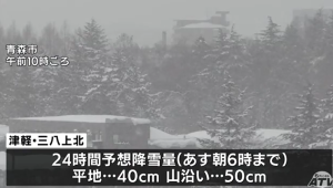 脇野沢では午前5時までの12時間に36㎝の雪が降り、