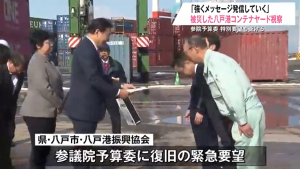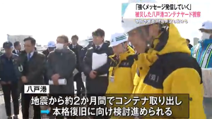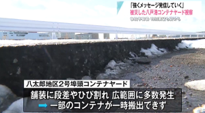 去年12月8日の地震で被災した八戸港のコンテナヤードでは、