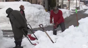 近くの住人が協力して雪かきを行った。
