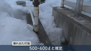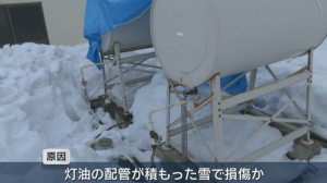 原因は灯油の配管が、積もった雪で損傷したためと見られる。