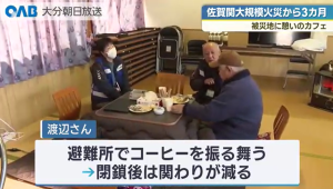 被災者にコーヒーを振る舞っていたが、