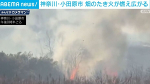 【神奈川県小田原市、畑の焚火が燃え広がる】