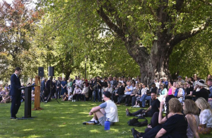 鐘を鳴らして犠牲者の名前を読み上げた。