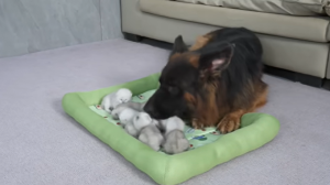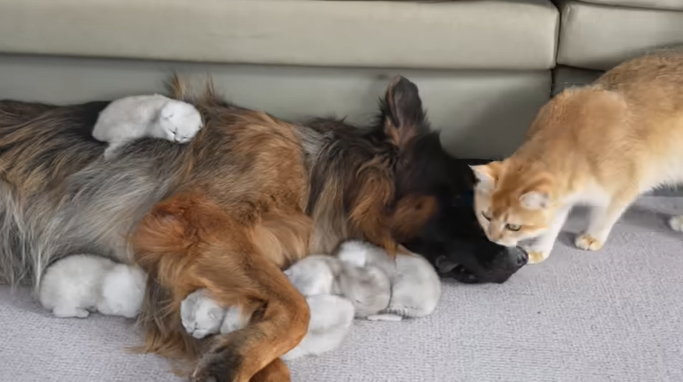 言わんばかりに子猫たちを見守るジャーマン・シェパード。