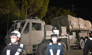 陸自は9日未明、ミサイルの発射機などを健軍駐屯地に搬入。
