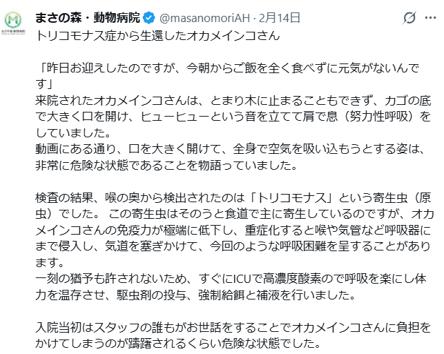 飼い主さんが、早く病院に連れて行き、